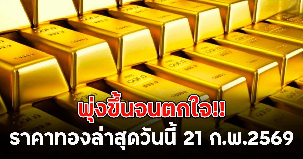 ราคาทองคำประจำวันที่ 21 ก.พ.2569 พุ่งแรง 900 บาท เปรียบเทียบกับราคาสุดท้ายของวันที่ 20 ก.พ.ที่ผ่านมา